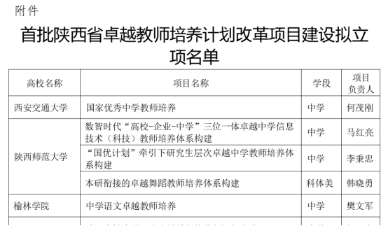 榆林学院成功获批首批陕西省卓越教师培养计划改革项目
